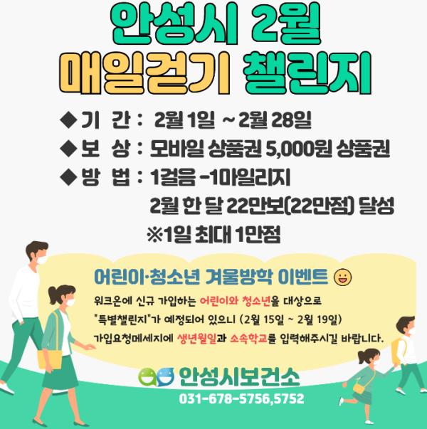 첫 단계로 오는 2월 1일부터 28일까지 한 달 간 모바일 걷기 앱 ‘워크온’을 활용한 매일걷기 챌린지를 개최한다.