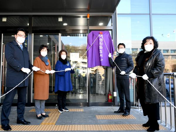 또한 이날 파주시청 민원동 출입구에서 최종환 파주시장, 한양수 파주시의회 의장, 이용욱 도시산업위원장, 박은주 의원, 이은미 시민참여단장이 참석한 가운데 ‘여성친화도시’ 현판식도 함께 진행됐다.