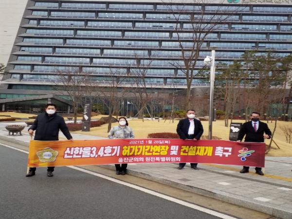 [한국연예축제일보, 변현식기자] 울진군의회 원전특별위원회는 1월 28일 한국수력원자력 경주본사를 방문하여 신한울3,4호기 건설사업 재개촉구를 위한 울진군민의 강력한 의사를 피력하였으며 한수원이 보다 적극적으로 대처해 줄 것을 요구하였다.