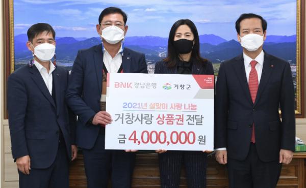 이어, 4,000천원 상당의 거창사랑상품권을 기탁한 경남은행 김정훈 거창지점장은 매년 소외계층을 위해 상품권, 전자제품, 여름나기 취약계층 쿨박스 등 지속적인 사회공헌 활동을 하고 있으며,