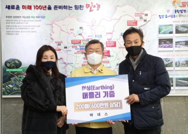 [한국연예축제일보, 유혜경기자] 밀양시는 29일 창원에 본사를 두고 있는 바네스에서 600만원 상당의 사랑나눔 물품을 기증했다고 밝혔다