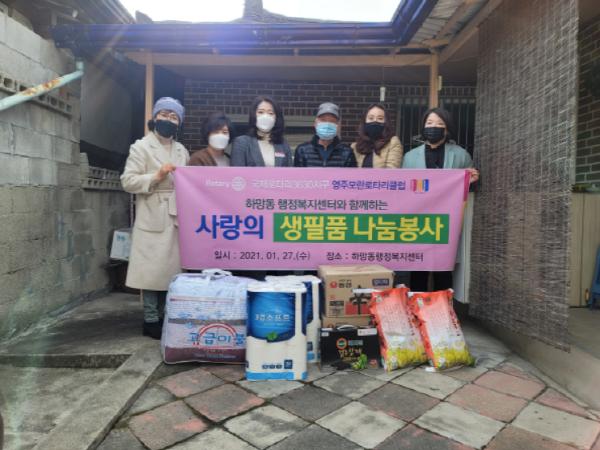 [한국연예축제일보, 유혜경기자] 영주시는 영주모란로타리클럽에서 지난 27일 ‘코로나19’ 장기화로 위기에 놓인 가구에 생필품을 전달했다고 밝혔다.