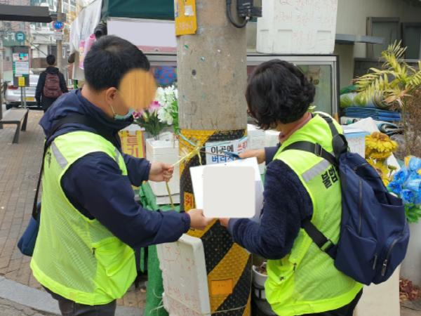 이는 사전 선정된 구민이 이면도로, 골목길, 대로변 등에 게시, 배포돼 있는 불법 현수막, 전단지, 벽보, 스티커, 명함형 전단지 등을 수거해 오면 실적에 따라 보상금을 지급하는 제도다.