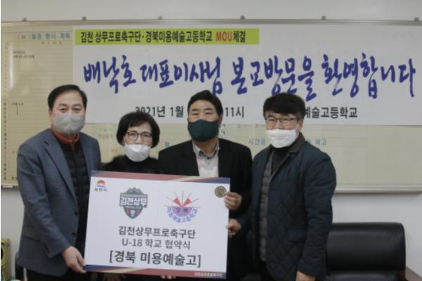 [한국연예축제일보, 나봉진기자] 김천시는 2021년 김천상무프로축구단이 경북미용예술고등학교와 협약을 맺고 U-18 유소년 팀을 창단했다고 밝혔다.