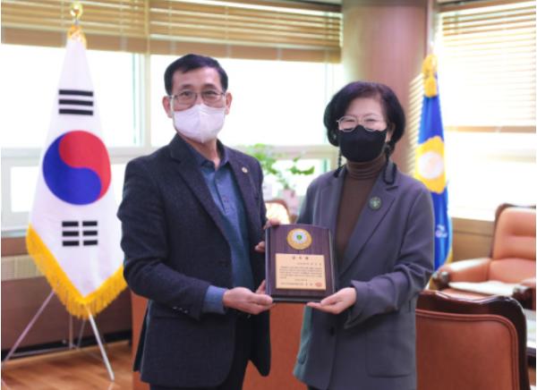 이날 박은경 의장은 자율방재단 측으로부터 주민 안전을 위한 의정활동에 매진한 공로를 인정받아 감사패를 받기도 했다.