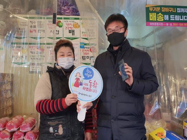이날 민병률 태화동장과 직원들은 태화종합시장 내 속옷가게와 식육점, 과일가게에서 10만원씩 선결제를 진행했다.