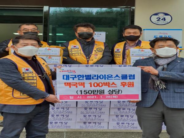 대구광역시 달서구, 대구 한별 라이온스클럽 두류3동에 떡국 100박스 후원