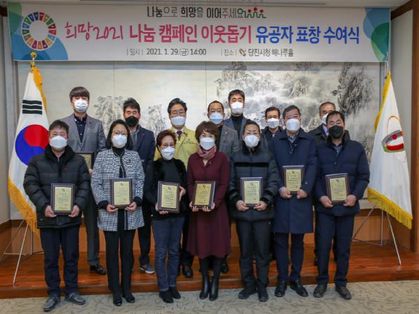 [한국연예축제일보, 유혜경기자] 당진시는 29일 당진시청 해나루홀에서 이웃돕기 유공자들에게 표창패를 수여하는 것으로 희망2021 나눔 캠페인을 마무리했다.