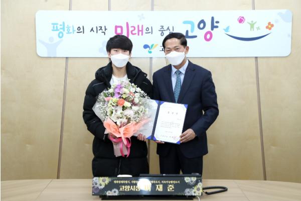 [한국연예축제일보, 유혜경기자] 고양시는 지난 20일 행신동 아파트에서 발생한 화재를 직접 진압해 대형 참사를 막은 소방공무원 준비생 권유호 청년(21세)에게 고양시장 표창장을 수여했다고 29일 밝혔다.