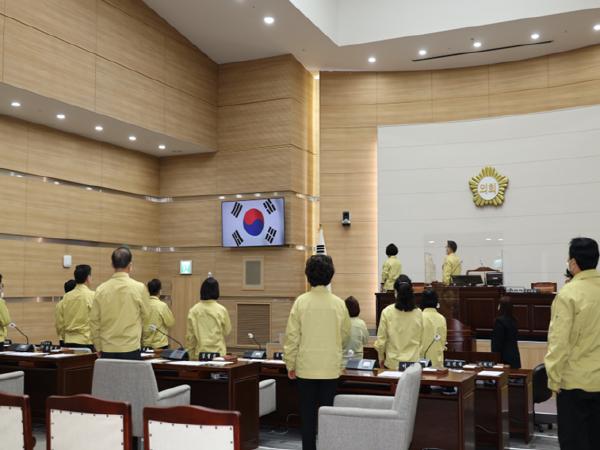 장정호 부의장은 개회사를 통해 “이번 제262회 임시회는 2021년도의 시작을 알리는 올해의 첫 회기이다.”라며, “의회와 집행부가 진정한 파트너로 더욱 협력하여 코로나19라는 전대미문의 위기를 극복하고 더불어 행복한 용산을 만들어 나가야 한다.