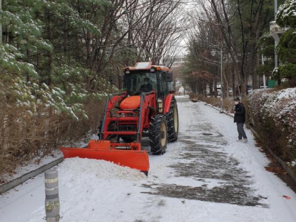 이날 인천에는 강풍주의보 및 대설주의보가 발효된 가운데 오전 중 3cm의 눈이 내렸다. 이에 서구청 제설용역차량 1대가 4회 상차를 반복해 이면도로에 염화칼슘을 살포했으며 주민통행이 잦은 언덕길, 인도 등은 김기철 주민자치위원장의 개인 트랙터를 이용해 제설작업을 실시했다.
