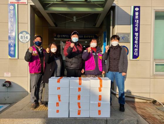 [한국연예축제일보, 유혜경기자] 서구 자원봉사단체인 신명라이온스클럽(회장 박재현)은 코로나19 장기화로 어려움을 겪고 있을 이웃들을 위해 지난 28일 불로대곡동 행정복지센터(동장 김현식)에 느타리버섯 2kg 15박스를 전달했다.