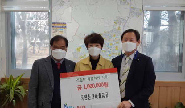 [한국연예축제일보, 유혜경기자] 지난 1월 27일 인천 계양구 효성1동 소재 북인천 새마을금고(대표이사 박홍수)는 2021년 적십자 회비 100만 원을 효성1동 행정복지센터에 전달했다.