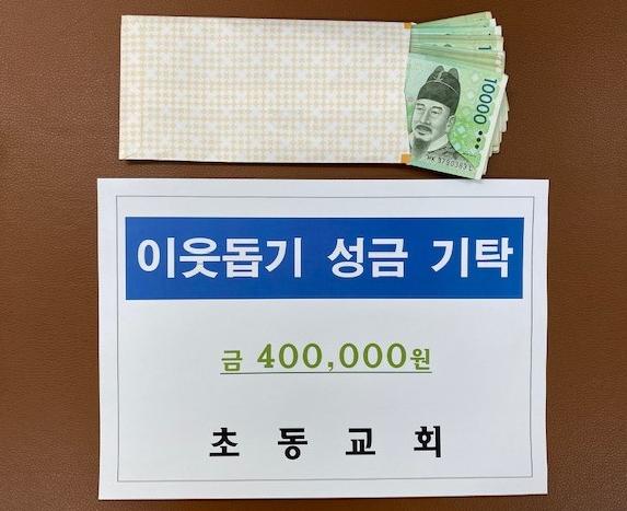 박정기 초동면장은 “코로나19 등으로 어렵고 힘든 시기에 이웃을 위한 사랑과 관심을 주신 초동교회에 감사드리며 기탁한 금품은 도움이 필요한 이웃들에게 소중히 전달하겠다”고 말했다.