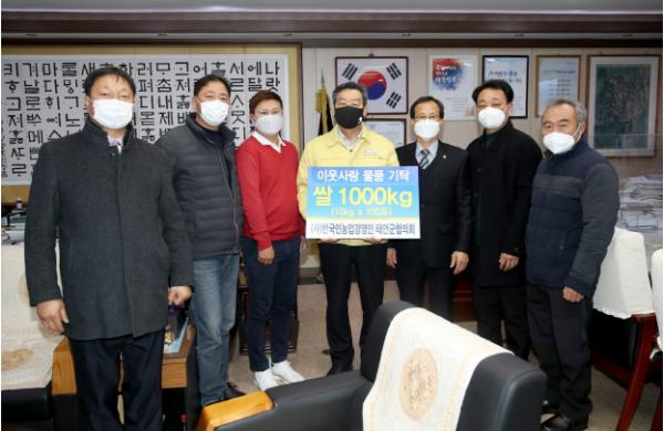 군에 따르면, ‘(사)한국농업경영인 태안군연합회(회장 가세현)’가 지난 28일 태안군청 군수 집무실에서 가세로 태안군수, 연합회 관계자 등이 모인 가운데 어려운 이웃을 위해 써달라며 쌀 1000kg(300만 원 상당)을 기탁했다.