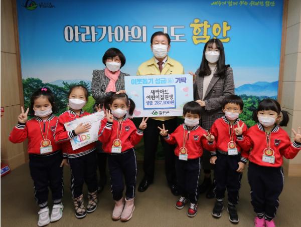 [한국연예축제일보, 유혜경기자] 가야읍 소재 새싹아트어린이집(원장 임혜영)은 지난 28일 함안군청을 방문하여 어려운 이웃을 돕기 위한 성금 287,100원을 기탁했다.