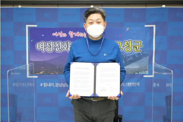 [한국연예축제일보, 유혜경기자] 고성군은 여성가족부로부터 여성친화도시로 지정받아 1월 29일 오후 2시 고성군청 군수실에서 ‘여성친화도시 조성 협약식’을 개최했다.