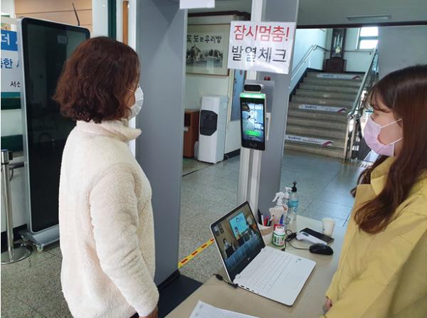 방문자의 발열 및 마스크 착용 체크는 지역방역일자리사업 1명과 노인일자리사업 9명이 투입되고 매주 보건소, 소독전문업체를 통해 소독을 실시하는 등 방역에 빈틈없이 추진한다.