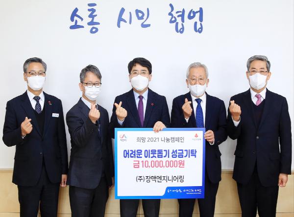 [한국연예축제일보, 유혜경기자] 서산시 ㈜장맥엔지니어링(대표 백진기)이 29일 서산시를 방문해 이웃돕기 성금 1000만원을 기탁했다.