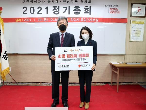 [한국연예축제일보, 변현식기자] 대전광역시 유성구의회 이금선 의장이 29일, 대한적십자사봉사회 유성지구협의회 정기총회에 참석해 2021년도 적십자 특별회비를 전달했다.
