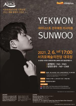 [한국연예축제일보, 이순례기자] 서귀포시에서는‘2021 명품클래식 시리즈’첫 번째 순서로 피아니스트 선우예권의 리사이틀을 2월 6일 오후 5시에 개최한다고 밝혔다.