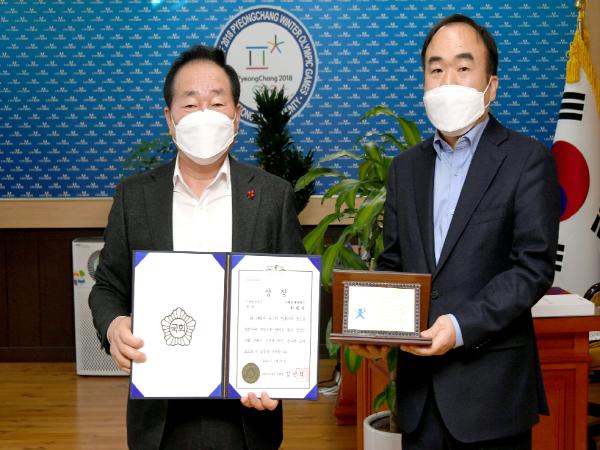 특히, 한왕기 평창군수는 복지분야 공약사업(17개 사업 중 완료 12, 정상추진 5) 추진율 100%를 바탕으로 건강보험심사평가원 교육연수원 유치, 여행지 만족도 평가 전국 2위, 공모사업(39건 1,626억원) 선정, 가족친화 재인증 기관 선정 등 지역발전 견인과 복지행정 추진 공로를 인정받아 지역발전부문 국회보건복지위원장상을 수상했다.