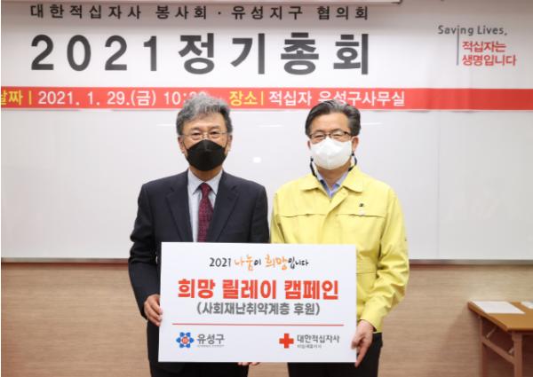 이날 정용래 유성구청장은 적십자 특별회비 100만 원을 대한적십자봉사회에 전달했다.