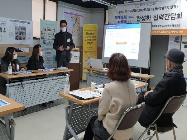 이 날 간담회는 새터마을 발전을 위한 각자의 역할과 협력 방안을 찾고자 마련됐다. 간담회에서는 한정광 센터장의 새터마을 현황과 주민협의체 활동, 국토부 도시재생예비사업에 관한 설명에 이어 온영란 이사장의 경기도 예비마을기업 지정에 따른 새터마을 협동조합 소개와 사업 내용 설명이 있었다.