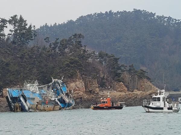[한국연예축제일보, 김채영기자] 주말인 토요일 30일 오전 7시 55분경 충남 태안군 신진항내 마도 인근 해상에서 정박계류 중이던 23톤급 통발 어선 A호와 29톤급 어획물운반선 B호가 갯바위에 얹혀 기울고 있다는 전화신고를 받고 태안해경이 긴급출동에 나섰다.
