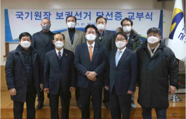 국기원선거관리위원회는 1월 29일 오전 11시 국기원 강의실에서 열린 ‘국기원장 보궐선거 당선증 교부식‘에서 이동섭 원장에게 당선증을 전달했다.