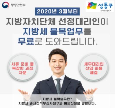 [한국연예축제일보, 유혜경기자] 서울 성동구는 경제적 사정으로 인하여 세무 대리인을 선임하기 어려운 영세한 납세자의 불복업무를 무료로 대행하는 지방자치단체 선정 대리인 제도를 운영하고 있다고 밝혔다.