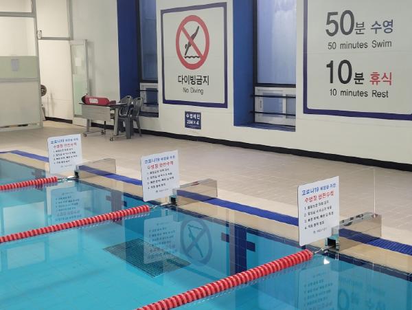 의왕도시공사 관계자는 수영은 마스크를 벗고 운동을 하는 종목으로 감염전파에 취약한 만큼 이번 칸막이 설치가 시민들의 만족도를 높이고 감염예방에 실효성이 높을 것으로 예상된다고 전했다.