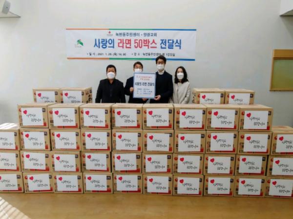 매년 꾸준한 나눔을 통해 이웃사랑을 실천하며 더불어 사는 따뜻한 지역사회를 만드는데 앞장서고 있는 양광교회는 올해도 교인들의 마음을 담은 사랑의 라면 50박스를 어려운 이웃에게 지원해달라며 기부했다.