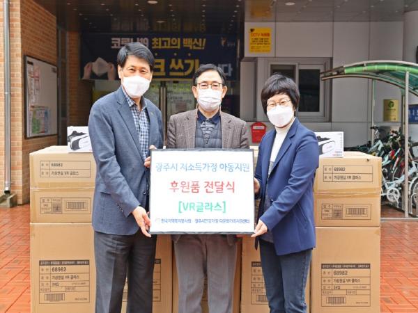 VR글라스는 스마트기기에 연결해 VR체험 및 3D영상과 게임까지 즐길 수 있는 제품으로 디지털정보 격차를 줄이기 위해 광주시 관내 지역아동센터와 7R청소년 공감센터 등을 이용하는 아동과 청소년에게 전달될 예정이다.