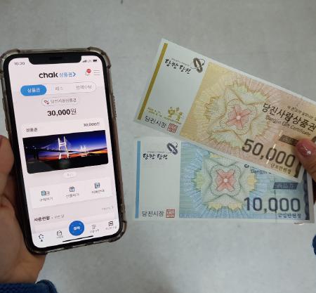 또 지난해 처음 발행한 모바일 당진사랑상품권은 플레이스토어나 앱스토어에서 ‘지역상품권chak’을 다운받아 회원가입 후 구매할 수 있으며, 지류상품권과 동일하게 10% 할인된 금액으로 구매가 가능하다.