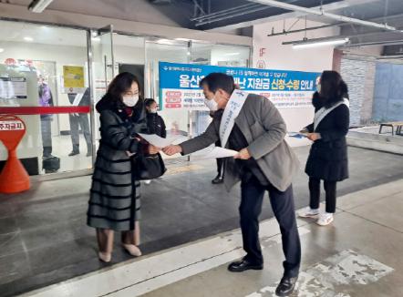 이 자리에서 참석자들은 시민들을 대상으로 코로나19로 인한 지역경제 침체를 극복하기 위해 오는 2월 1일부터 10일까지 진행되는 ‘울산형 긴급재난지원금’ 신청 안내 홍보물을 나눠줬다.