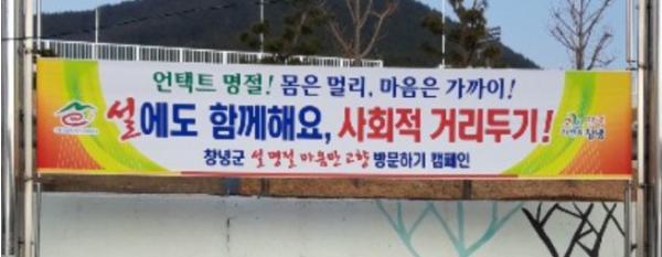 [한국연예축제일보, 유혜경기자] 창녕군은 코로나19 감염병 예방 및 확산 방지 등을 위하여 설 명절 고향 방문 자제 분위기를 확산하고자 ‘설 명절 마음만 고향 방문하기 캠페인’을 추진한다고 밝혔다.