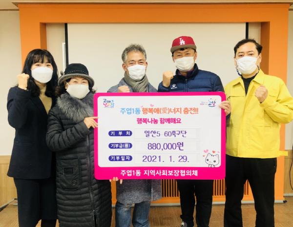 [한국연예축제일보, 유혜경기자] 고양시 일산서구 주엽1동(동장 이홍연) 지역사회보장협의체(민간위원장 이매순)는 지난 1월 29일 ‘일산5~60축구단’으로부터 88만원의 후원금을 기탁 받았다.
