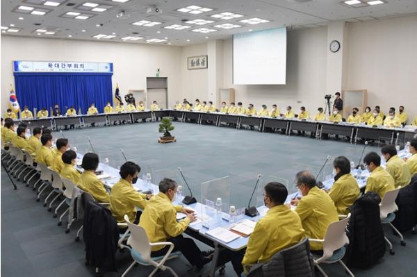 이날 회의에는 부산시 각 실?국?본부장과 구?군 부단체장, 부산시 산하 기관장들이 참석했다. 회의는 청 내 방송으로도 실시간 중계돼 부산시 전 직원이 지켜보는 가운데 진행됐다.
