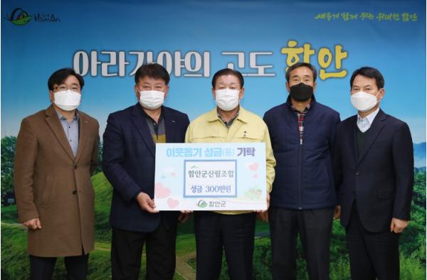[한국연예축제일보, 유혜경기자] 함안군 산림조합(조합장 안상주)은 지난 1월 29일 오전 11시, 군청을 방문하여 이웃돕기 성금 300만 원을 기탁했다.