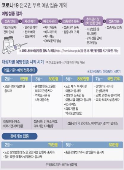 1일 시에 따르면, 예방접종은 질병관리청의 국가 계획에서 정해진 우선순위에 따라 단계적으로 실시된다.