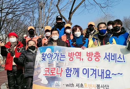 이날 “찾아가는 방역봉사 찾·방”은 서울시지체장애인협회 생활안심 전문 방역팀과 서초오렌지봉사단원들이 참여해 최근 코로나19로 어려움을 겪고 있는 사우나 시설을 시작으로 음식점, 옷가게, 놀이터, 시각장애인 복지시설 등 방배동 카페골목과 서초구 일대 곳곳을 방문하여 방역활동을 전개했다.