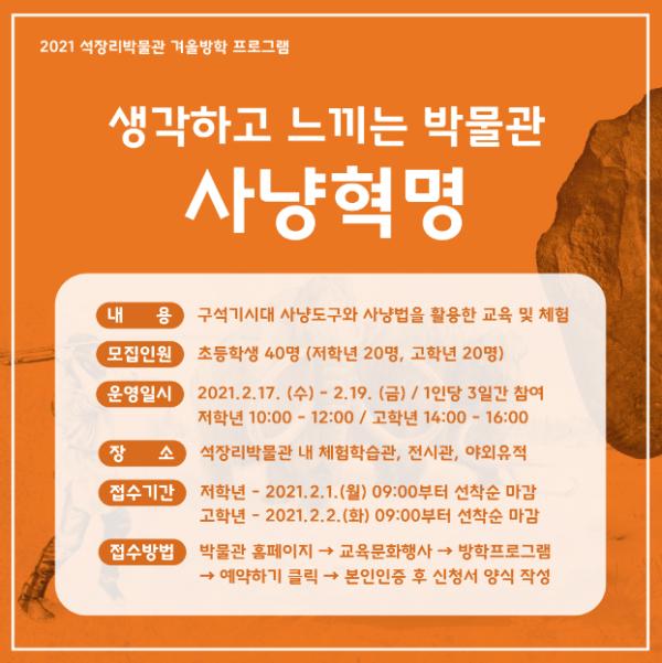 이번 프로그램은 ‘사냥혁명’을 주제로 석장리박물관 특별기획전과 연계해 구석기 시대 사냥도구와 사냥법을 배우고 구석기인들의 사냥문화를 직접 체험해 보는 시간으로 진행된다.