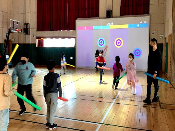 먼저 VR 스포츠 장비는 가상현실 기술을 적용해 아이들의 신체활동을 유도한다. 직접 몸을 움직여 화면을 터치하고 스크린을 향해 공을 맞추는 등 게임을 매개로 두뇌발달과 신체활동을 결합시켰다. 현재 수학, 언어, 과학, 영양 등을 주제로 31종의 콘텐츠가 운영되고 있으며, 향후 다양한 학습내용과 접목할 수 있다는 점에서 활용도가 높다.