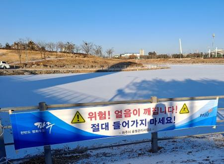 공원관리사업소 관계자는 “기온이 올라가면서 얼음 두께가 일정하지 않고 수심이 깊은 곳은 얼음 두께가 얇아 안전사고 발생 위험이 높다”라며 ”빙판 출입을 하지 않도록 시민들의 각별한 주의가 필요하다”라고 말했다.