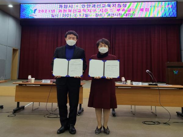 [한국연예축제일보, 서병진기자] 경기도안양과천교육지원청은 과천시와 2월 1일 과천시청 대강당에서 2021년 과천혁신교육지구 시즌Ⅲ 사업 추진을 위한 부속 합의를 체결하였다.