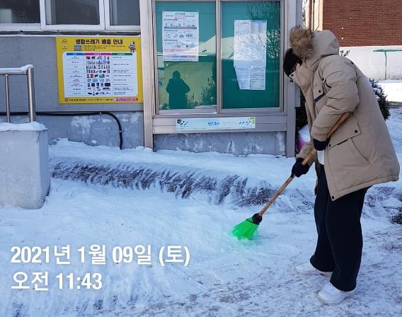1월 동안 총 4회(8일, 9일, 13일, 18일)의 눈치우기 작전이 진행됐으며 총 41명의 학생이 아산 시장길 일대, 청소년 문화의집 인근 등 각 가정 인근 지역에서 눈치우기 봉사활동에 참여했다.