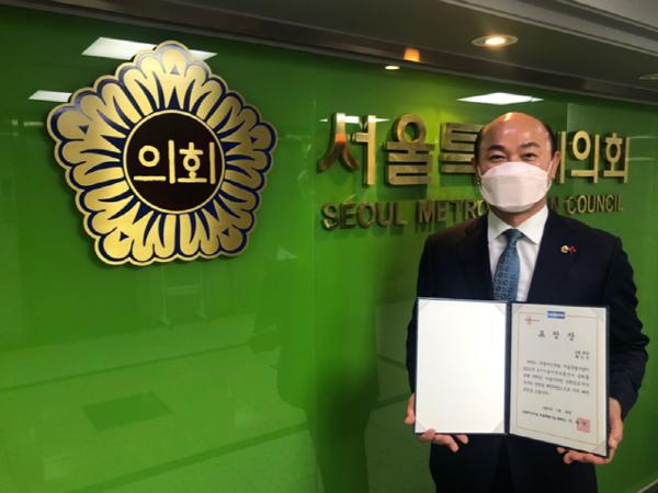 [한국연예축제일보, 변현식기자] 서울특별시의회 교육위원회 황인구 의원이 더불어민주당 서울특별시당에서 진행한 2021년 서울시장 보궐선거 대비 서울시의원 정책공모에서 서울특별시당 위원장 2급 포상을 수상했다고 29일 밝혔다.