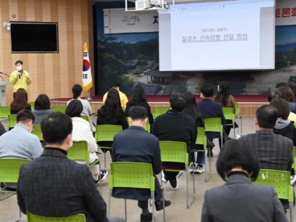 시는 안동국 기획예산실장 주재로 본청 실·단·과를 대상으로 적극적인 신속집행추진을 위한 전달회의를 갖고 ‘코로나19’ 확산 및 방역 강화로 내수와 소비가 급격히 위축된 상황에서 경기 회복을 위해 올해 추진할 사업의 계획을 점검하고 추진 과정상 문제점을 논의했다.