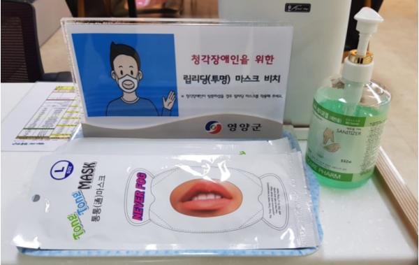 이에 영양군은 민원실을 방문하는 청각장애인과 창구담당직원이 서로 입모양을 보며 의사소통할 수 있는 립리딩 투명마스크를 구입·비치하여 민원편의를 도모하였다.